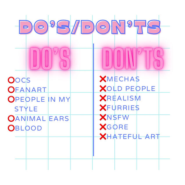 5. If any of these terms are violated, I reserve the right to add you to my blacklist which may be shared with other creators.